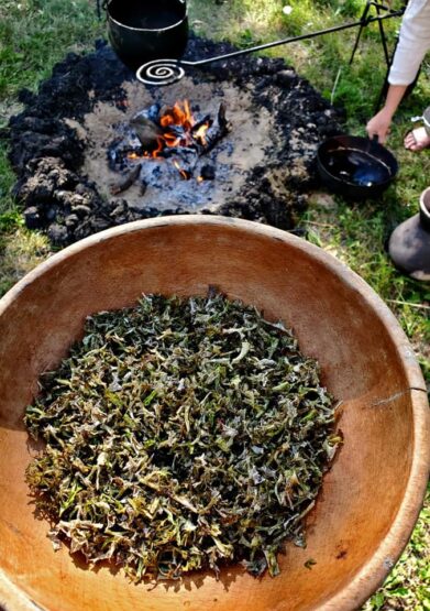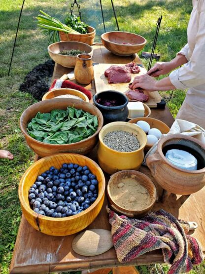 By researching archeological finds to find what edible plants and animals were available and how they were prepared, reading tales of feasts in the Sagas and experimenting with period techniques and tools our cooks are able to recreate delicious recipes.